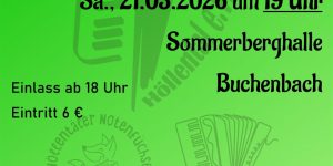 Als einmaliges Event veranstalten wir ein Frühlingskonzert am 21.03. in der Sommerberghalle. Der Einlass ist ab 18 Uhr. Eintritt Erwachsene 6,- € Eintritt Kinder frei! Es erwarten Sie Auftritte …